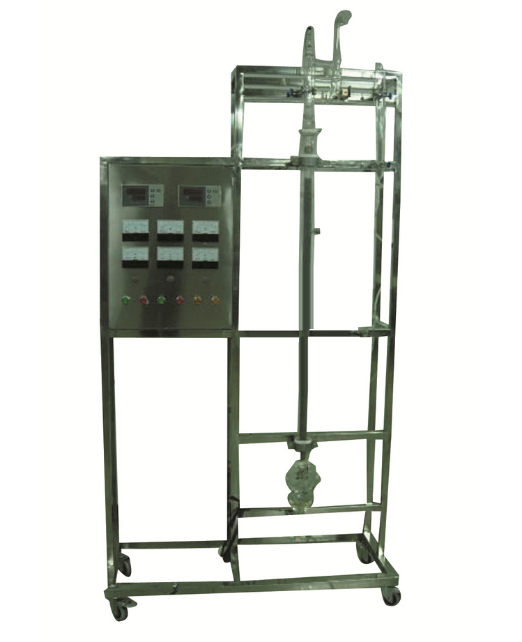 1、精餾塔塔徑φ25mm,塔高1400mm,材質(zhì)為玻璃塔結(jié)構(gòu),塔內(nèi)填裝φ3x 3 mm不銹鋼θ網(wǎng)環(huán)型填料。塔釜為三口燒瓶,容積1000ml,塔外壁鍍有金屬保溫膜,通電加熱保溫,功率:300W。 2、塔釜加熱:塔釜置于1000W電熱包中。采用電壓控制器控制釜溫。 3、250ml高位玻璃加料瓶,LZB--2轉(zhuǎn)子流量計(jì):流量范圍1.6~16ml/min ,數(shù)量2套。 4、溫度控制及儀表:3個(gè)數(shù)顯溫度控制儀,量程:0-150℃;溫度誤差≤2℃。 5、塔頂冷凝器為蛇管冷凝器,塔頂冷凝液體的回流采用擺動(dòng)式回流比控制器操作。此控制系統(tǒng)由塔頭上擺錘、電磁鐵線圈、回流比計(jì)數(shù)器等儀表組成。 6、各項(xiàng)操作及溫度、回流比、流量的顯示、調(diào)節(jié)、控制全在控制屏面板進(jìn)行。 7、框架為304不銹鋼材質(zhì),結(jié)構(gòu)緊湊,外形美觀,流程簡單、操作方便。 8、外形尺寸:1200×500×2100mm(長×寬×高),外形為可移動(dòng)式設(shè)計(jì),帶3寸雙剎車輪。 |
