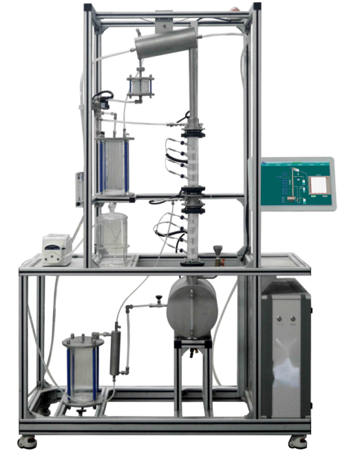 1、塔體:高硼硅玻璃,塔徑50mm,塔板:可拆卸,單溢流降液管開(kāi)孔率11%,原料處理量:50mL/min 2、塔釜:304衛(wèi)生級(jí)不銹鋼,容積≥13L,加熱功率3kW,連續(xù)可調(diào),自動(dòng)控溫。 3、塔頂全凝器:盤管式,不304衛(wèi)生級(jí)不銹鋼,尺寸φ89×300mm。 4、管路:透明,耐溫120℃,耐腐蝕。 5、轉(zhuǎn)子流量計(jì):透明可視,16-160L/h。 6、原料罐、產(chǎn)品罐:玻璃,4L,可密閉。 7、液位計(jì)傳感器,400mm插入式液位計(jì),4-20mA遠(yuǎn)傳輸出,流量檢測(cè)機(jī)構(gòu)。 8、塔釜壓力:壓力傳感器,測(cè)量范圍:0-20KPa,精度0.5級(jí)。 9、進(jìn)料蠕動(dòng)泵,進(jìn)料量:2.5-25L/h。 10、回流系統(tǒng):由2個(gè)24V電磁閥和時(shí)間繼電器控制回流比。 11、溫度傳感器:Pt100,分辨率0.1℃,精度0.5%。插入長(zhǎng)度可調(diào)整,直徑φ3mm 12、電器:接觸器、開(kāi)關(guān)、漏電保護(hù)空氣開(kāi)關(guān)。 13、中央處理器:執(zhí)行速度0.64μs,內(nèi)存容量16K,功能:數(shù)據(jù)處理運(yùn)算。 14、模擬模塊:高達(dá)16位分辨率,總和精度±0.5%,內(nèi)建RS485通訊模式。 15、溫度模塊:分辨率0.1℃,精度0.5%,內(nèi)建RS485通訊模式。 16、采用一體機(jī)平板觸摸電腦,全程數(shù)字化觸摸屏控制操作。HMI:投射式觸控技術(shù),5000萬(wàn)次觸摸點(diǎn),內(nèi)存2G,功能:中央處理器數(shù)據(jù)顯示控制。 17、額定電壓:380V,總功率:3.5kW,質(zhì)量:約150 kg 18、外形尺寸:2000×580×2200mm(長(zhǎng)×寬×高),外形為可移動(dòng)式設(shè)計(jì),帶剎車輪,高品質(zhì)鋁合金型材框架,無(wú)焊接點(diǎn),安裝拆卸方便,水平調(diào)節(jié)支撐型腳輪。 19、工程化標(biāo)識(shí):包含設(shè)備位號(hào)、管路流向箭頭及標(biāo)識(shí)、閥門位號(hào)等工程化設(shè)備理念配套,使學(xué)生處于安全的實(shí)驗(yàn)操作環(huán)境中,學(xué)會(huì)工程化管路標(biāo)識(shí)認(rèn)知,培養(yǎng)學(xué)生工程化理念。 |