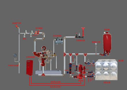 干式系統(tǒng)的基本構(gòu)成條件包括水源、加壓與穩(wěn)壓設(shè)施、壓力氣源、報(bào)警裝置、管網(wǎng)及閉式噴頭等部分。