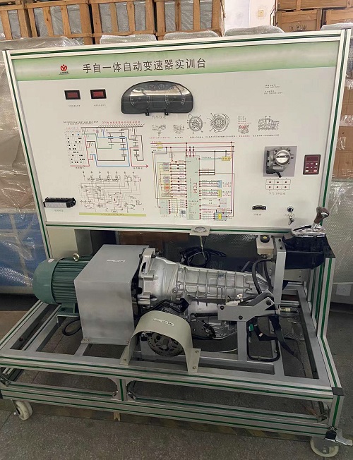 采用A341E自動變速器總成、自動變速器控制單元、掛檔桿總成、變速器油散熱裝置、組合儀表、三相調(diào)速電機、節(jié)氣門體總成、發(fā)動機曲軸傳感器及信號盤、診斷座、壓力表、故障設置系統(tǒng)、原車電路原理圖板及檢測端子、移動臺架等。配任務驅(qū)動教學模式的實訓指導書及臺架操作說明書。各傳感器及執(zhí)行器安裝數(shù)字顯示表、臺架安裝主油道壓力表、帶鎖止萬向的腳輪、不銹鋼護手、臺架高溫及轉(zhuǎn)動等部位加裝防護裝置等組成。