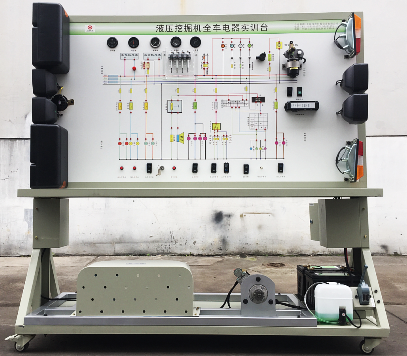 該液壓挖掘機(jī)全車電器實(shí)訓(xùn)臺采用SW-45C液壓挖掘機(jī)整車電器實(shí)物為基礎(chǔ),充分展示儀表系統(tǒng)、燈光系統(tǒng)、雨刮系統(tǒng)、喇叭系統(tǒng)、發(fā)動(dòng)機(jī)電器系統(tǒng)、起動(dòng)系統(tǒng)和充電系統(tǒng)等電器各系統(tǒng)的組成結(jié)構(gòu)和工作過程。
