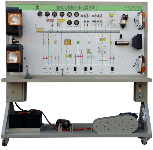 該設備采用 ZC50輪式裝載機 整車電器實物為基礎,充分展示儀表系統(tǒng)、燈光系統(tǒng)、雨刮系統(tǒng)、喇叭系統(tǒng)、發(fā)動機電器系統(tǒng)、起動系統(tǒng)和充電系統(tǒng)等電器各系統(tǒng)的組成結構和工作過程。