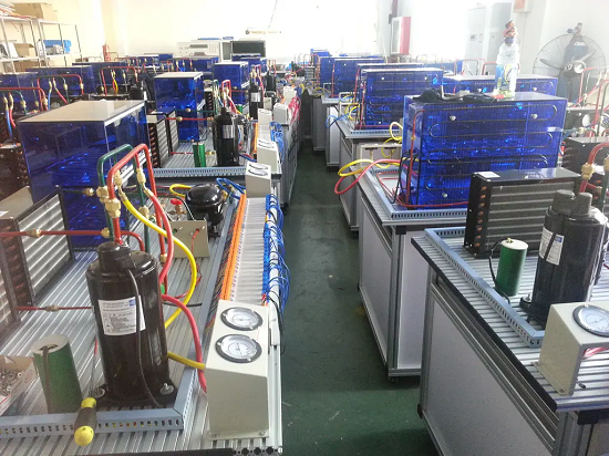 是根據(jù)制冷制熱類行業(yè)中空調(diào)與冰箱維修技術(shù)的特點,針對空調(diào)和冰箱的電氣控制以及制冷系統(tǒng)、電氣控制系統(tǒng)、系統(tǒng)調(diào)試、故障診斷等特點進行設(shè)計。強化了學(xué)生對空調(diào)冰箱系統(tǒng)管路的安裝與維修系統(tǒng)調(diào)試等的等的綜合職業(yè)能力,通過設(shè)備進行項目訓(xùn)練,能提高學(xué)生的動手操作能力,計劃組織能力,制冷系統(tǒng)的調(diào)試安裝能力,電氣控制電路維修能力。