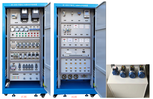 是按照勞動社會保障部頒發(fā)的“工人技術(shù)等級標準”和“職業(yè)技能鑒定規(guī)范”的內(nèi)容要求,根據(jù)電工培訓考核的實際情況而設(shè)計的,以標準的電氣控制柜為主柜,利用柜體的雙面空間,布置電器及配套實驗器材,能完成電工考核鑒定中的電力拖動控制與照明電路的實操項目,該電工電拖實訓考核柜堅持理論聯(lián)系實際的原則,突出技能訓練,注重針對性、實用性、科學性。該柜體設(shè)計合理、實操方便,占地面積少。為延長電器的使用壽命,各電器的接點都與接線端子相連,再讓學生在接線端子上接線,連接電機、電器來完成各項控制實驗。該套設(shè)備適用于各勞動職業(yè)技能鑒定部門,同時也適應(yīng)中職、技校電工電拖專業(yè)教學與實訓考核的理想設(shè)備。