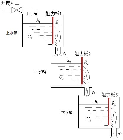 現(xiàn)要設(shè)計(jì)控制系統(tǒng)控制下水箱內(nèi)液位高度保持與設(shè)定值一致,對(duì)上水箱和中水箱中的液位高度無(wú)特殊要求,即上中兩個(gè)水箱控制下水箱。