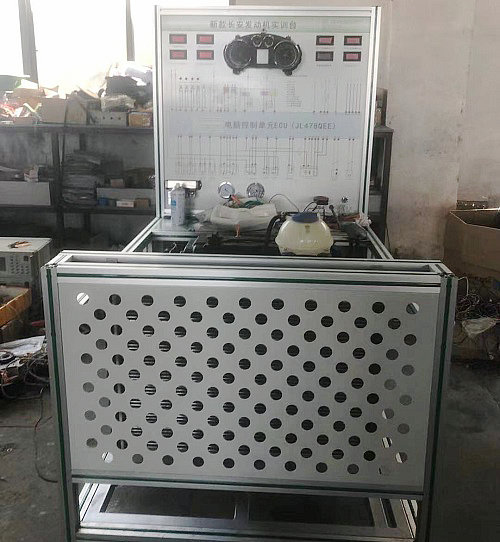 2、產(chǎn)品功能:A、操作控制臺:用于起動和關(guān)閉發(fā)動機,用手動油門對發(fā)動機轉(zhuǎn)速進行調(diào)節(jié)。包括汽車儀表板總成、點火開關(guān)、實訓臺電源總開關(guān)、手動油門、燃油壓力表、真空表、噴油脈沖及節(jié)氣門開度LED顯示屏。B、測量面板:利用萬用表在測量面板的測量孔上測量信號,也可以使用示波儀或發(fā)動機綜合分析儀測量發(fā)動機傳感器或執(zhí)行的波形。測量面板上包括電控系統(tǒng)電路圖、與電腦管腳對應的信號測量孔,真實可運行的發(fā)動機電控系統(tǒng),模擬發(fā)動機曲軸運轉(zhuǎn),可產(chǎn)生火花塞點火 、燃油泵工作、噴油器噴油等執(zhí)行元件工作、充程。C、診斷插座:安裝在實訓臺上,可以將診斷儀連接到診斷插座上對發(fā)動機電控系統(tǒng)進行診斷,可連接或通用型汽車解碼器,對發(fā)動機電控系統(tǒng)進行讀取故障碼、清除故障碼、讀取數(shù)據(jù)流等發(fā)動機電控系統(tǒng)自診斷功能。D、手動故障設置盒:手動故障設置開關(guān)、故障設置說明,位于實訓臺的隱蔽部位。