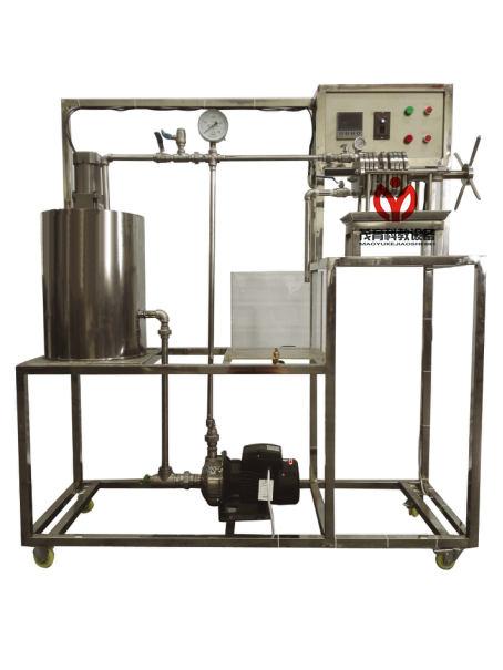 1、304不銹鋼物料桶:φ500×600mm。 2、304不銹鋼板框:共5塊,過濾板框過濾截面Φ100mm。 3、有機(jī)玻璃濾液箱:320*280*300mm。 4、調(diào)速電機(jī):電壓AC220V,功率90W,攪拌器轉(zhuǎn)速:0-200r/min。 5、指針式壓力表:0~0.25Mpa。 6、溫度顯示儀,Pt100鉑電阻溫度傳感器 :0—100℃。 7、不銹鋼離心泵:功率750W,最大流量7.2m3/h。 8、電器:接觸器、開關(guān)、漏電保護(hù)空氣開關(guān)。 9、304不銹鋼管路、管件及閥門。 10、304不銹鋼儀表柜:測(cè)控、電器設(shè)備在實(shí)驗(yàn)架上。 11、304不銹鋼材質(zhì)框架1600*500*1800mm(長×寬×高),帶腳輪及禁錮腳。 |