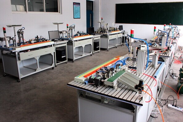光機電一體化實訓設(shè)備是根據(jù)職業(yè)教育培訓教材編寫《機電一體化專業(yè)》相關(guān)的技能培訓要求而研制的,結(jié)合當前工業(yè)自動化應用技術(shù)及器件技術(shù)的發(fā)展,充分考慮實用性、先進性。根據(jù)任務引領(lǐng)式行為導向教學法,以重點培養(yǎng)學生的動手實操能力,團隊協(xié)作能力,創(chuàng)新能力。該實訓裝置由鋁合金導軌式實訓臺、典型的機電一體化設(shè)備的機械部件、PLC模塊、變頻器模塊、步進電機(或伺服電機)模塊、按鈕模塊、電源模塊、模擬生產(chǎn)設(shè)備實訓模塊、接線端子排和各種傳感器、計算機等組成。整體結(jié)構(gòu)采用開放式和拆裝式,實訓裝置用于機械部件組裝,可根據(jù)現(xiàn)有的機械部件組裝生產(chǎn)設(shè)備,也可添加機械部件組裝其他生產(chǎn)設(shè)備,使整個裝置能夠靈活的按教學或技能競賽要求組裝,具有生產(chǎn)功能的機電一體化設(shè)備。同時還要求具有可拓展功能,可以組成更加大型的生產(chǎn)模擬系統(tǒng),以配合各個用戶學校不同層次,不同專業(yè)的教學及培訓要求。