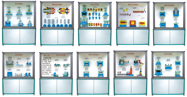 | 第三柜典型彎曲模 | 帶滑輪擺凸模的彎模、搖板模、一次彎成的彎圓模、 U 形件彎曲模、通用 V 形彎曲模、 L 形件彎曲模 |