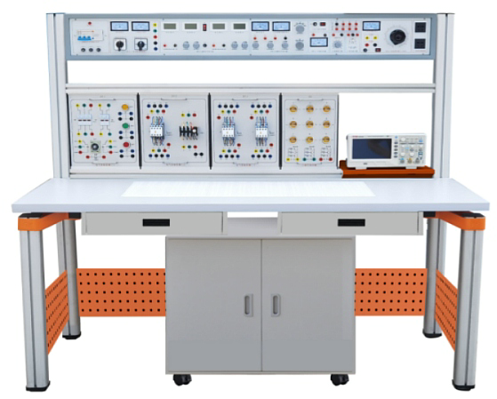 裝置由主機(jī)箱、實(shí)驗(yàn)桌、實(shí)訓(xùn)屏、實(shí)訓(xùn)掛箱、移動(dòng)矮柜、示波器架、學(xué)生凳等組成。實(shí)訓(xùn)裝置支架與實(shí)訓(xùn)桌可組合、可拆裝。支架與桌腳一體,鋁合金結(jié)構(gòu),實(shí)訓(xùn)掛箱、各實(shí)驗(yàn)?zāi)K可根據(jù)實(shí)驗(yàn)需求自由組合放置。