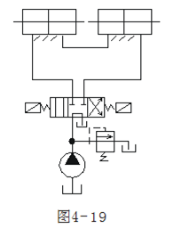 動作開始時(shí),第一個(gè)液壓缸回油腔排出的油被送入第二個(gè)液壓缸的進(jìn)油腔,若兩缸的有效工作面積相等,則應(yīng)能實(shí)現(xiàn)同步運(yùn)動。這種回路結(jié)構(gòu)簡單、效率高,能適應(yīng)較大的偏載,但泵的供油壓力較高,同步精度受兩缸制造精度。內(nèi)部泄露和空氣混入等因素影響。該回路是速度同步。