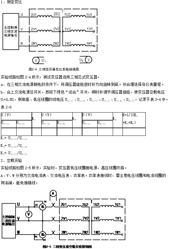 1.通過空載和短路實驗,測定三相變壓器的變比和參數(shù)。