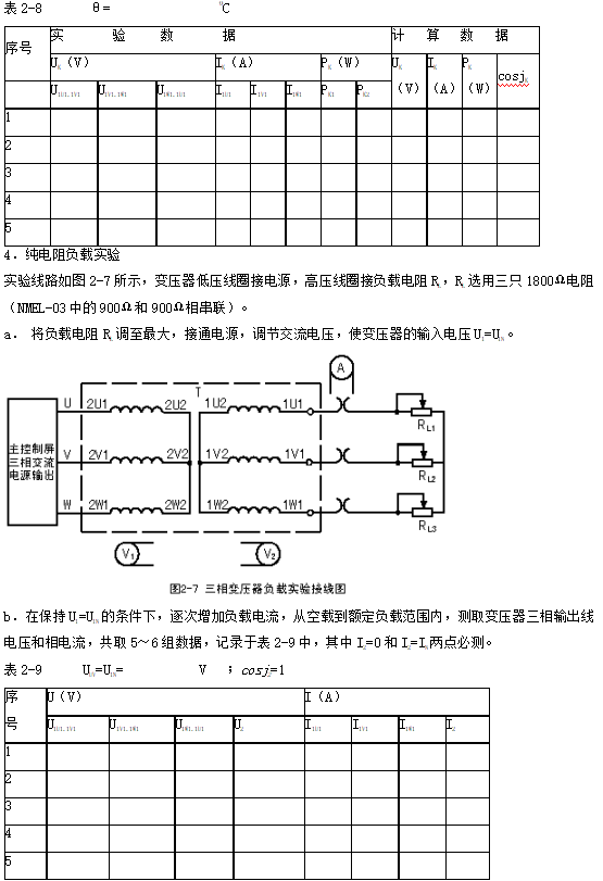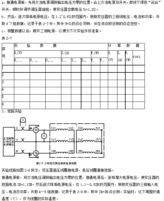 2.通過負載實驗,測取三相變壓器的運行特性。