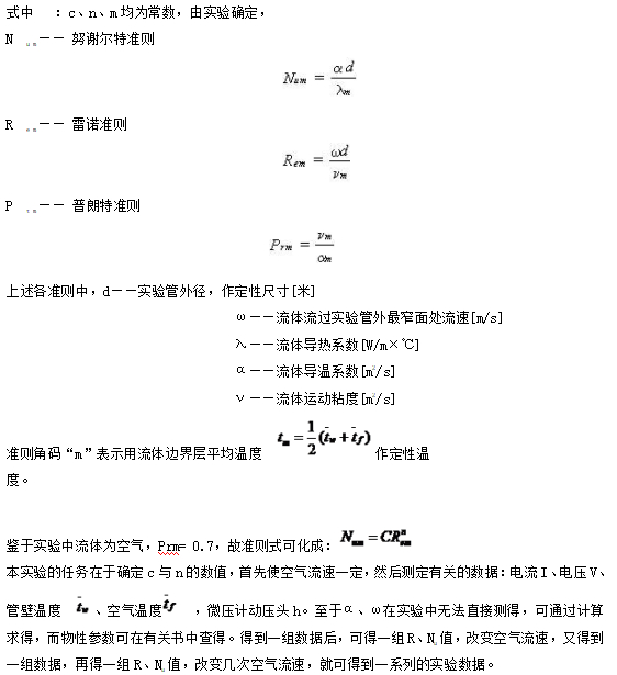 2.測定空氣橫向流過單管表面時的平均放熱系數(shù)α,并將實(shí)驗(yàn)數(shù)據(jù)整理成準(zhǔn)則方程式;