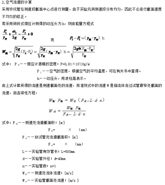 由于實(shí)驗(yàn)段前有兩段整流,可使進(jìn)入實(shí)驗(yàn)段前的氣流穩(wěn)定。畢托管置于流速段,測速段截面較實(shí)驗(yàn)段小,以使流速提高,測量準(zhǔn)確。風(fēng)量電子調(diào)速調(diào)節(jié)。實(shí)驗(yàn)風(fēng)洞中安裝了一根實(shí)驗(yàn)管,管內(nèi)裝有電加熱器作為熱源,管壁嵌有四支熱電偶以測壁溫。
