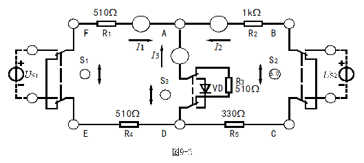,圖中的電源US1用恒壓源I路0~+30V可調(diào)電壓輸出端,并將輸出電壓調(diào)到+12V,US2用恒壓源II路0~+30V可調(diào)電壓輸出端,并將輸出電壓調(diào)到+6V(以直流數(shù)字電壓表讀數(shù)為準(zhǔn)),開關(guān)S3 投向R3側(cè)。