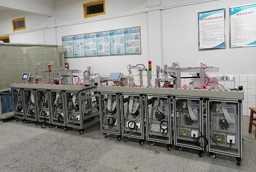 一、建設(shè)目標(biāo) 結(jié)合學(xué)院當(dāng)前和未來(lái)的發(fā)展規(guī)劃目標(biāo),本次規(guī)劃設(shè)計(jì)的工業(yè)機(jī)器人技能技能工作室能達(dá)到以下目標(biāo): --具備能夠滿足各專業(yè)教學(xué)實(shí)訓(xùn)的基本技能、綜合技能、創(chuàng)新技能,以及中級(jí)、高級(jí)、技師、高級(jí)技師的職業(yè)資格和人才培養(yǎng)的需求。 --具備能夠滿足現(xiàn)代先進(jìn)技術(shù)并緊密結(jié)合先進(jìn)制造業(yè)技術(shù)發(fā)展的新工藝、新知識(shí)、新技能、新任務(wù)的需求。 --具備能夠滿足緊缺人才培訓(xùn),高技能人才培訓(xùn),農(nóng)村勞動(dòng)力轉(zhuǎn)移培訓(xùn),退役士兵培訓(xùn),職業(yè)能力轉(zhuǎn)換培訓(xùn)等綜合培訓(xùn)、鑒定的需求。 --具備能夠滿足國(guó)家骨干師資培訓(xùn),一體化教學(xué)師資培訓(xùn)及其他雙師型師資培訓(xùn)等綜合性師資培訓(xùn)的需求。 --具備能夠滿足開展教學(xué)研討,開展技能競(jìng)賽,開展學(xué)術(shù)交流,開展課程改革等等需要的多功能綜合性基地的需求。 規(guī)劃設(shè)計(jì)的一體化機(jī)電專業(yè)、電氣和自動(dòng)化專業(yè)、工業(yè)自動(dòng)化專業(yè)實(shí)訓(xùn)基地的實(shí)訓(xùn)裝備,本著實(shí)用性,實(shí)操性,職業(yè)性,綜合性為出發(fā)點(diǎn),其技術(shù)優(yōu)勢(shì)如下: 技術(shù)的先進(jìn)性 整套方案體現(xiàn)出現(xiàn)代制造業(yè)領(lǐng)域中所包含的PLC控制技術(shù)、網(wǎng)絡(luò)通信技術(shù)等先進(jìn)控制理念及管理系統(tǒng)。 --技術(shù)的前瞻性 本套方案在基于現(xiàn)代控制理念的基礎(chǔ)上,突出體現(xiàn)現(xiàn)代制造業(yè)前沿科技的應(yīng)知點(diǎn)及應(yīng)會(huì)點(diǎn),如工業(yè)機(jī)器人控制技術(shù),智能監(jiān)控技術(shù)等。 技術(shù)的綜合性 集成了光、機(jī)、電、氣、液、網(wǎng)絡(luò)通信、數(shù)字控制等綜合技術(shù)的應(yīng)用,完全覆蓋現(xiàn)有機(jī)電專業(yè)教學(xué)大綱及流行教材的訓(xùn)練內(nèi)容。 技術(shù)的職業(yè)性 方案所涉及的訓(xùn)練內(nèi)容,在滿足機(jī)電專業(yè)教學(xué)的前提下,結(jié)合相關(guān)工種的國(guó)家職業(yè)標(biāo)準(zhǔn),既能進(jìn)行培訓(xùn)練習(xí)又能用于鑒定考核。 技術(shù)的可操作性訓(xùn)練載體體現(xiàn)高起點(diǎn)、高科技、高技能的特點(diǎn),該套方案配備了完整系統(tǒng)的解決措施,具備配套的課程體系、教學(xué)大綱、訓(xùn)練教材及長(zhǎng)期穩(wěn)定的師資培訓(xùn)計(jì)劃。 技術(shù)的兼容性 該方案的技術(shù)來(lái)源于生產(chǎn)實(shí)際,不但能夠用于教學(xué)訓(xùn)練,還能進(jìn)行與生產(chǎn)實(shí)際相關(guān)的典型工作任務(wù),使學(xué)校實(shí)訓(xùn)與生產(chǎn)實(shí)際零距離接軌。 二、實(shí)訓(xùn)項(xiàng)目 1.PLC認(rèn)知實(shí)訓(xùn)(軟硬件結(jié)構(gòu)、系統(tǒng)組成、基本指令、接線、編程下載等) (一).PLC虛擬控制應(yīng)用實(shí)訓(xùn) 1.數(shù)碼顯示控制 2.搶答器控制 3.天塔之光控制 4.音樂噴泉控制 5.十字路口交通燈控制 6.水塔水位控制 7.自動(dòng)送料裝車系統(tǒng)控制 8.四節(jié)傳送帶控制 9.裝配流水線控制 10.多種液體混合裝置控制 11.自動(dòng)洗衣機(jī)控制 12.貨物分揀機(jī)控制 13.自動(dòng)售貨機(jī)控制 (二).PLC實(shí)物控制應(yīng)用實(shí)訓(xùn) 14.視覺識(shí)別控制 15.RFID控制 16.長(zhǎng)度定長(zhǎng)控制 17.稱重控制 18.氣動(dòng)基本回路控制 19.直線運(yùn)動(dòng)位置檢測(cè)、定位控制 20.步進(jìn)電機(jī)定位控制 21.步進(jìn)電機(jī)的速度控制 22.步進(jìn)電機(jī)的正反轉(zhuǎn)控制 23.伺服電機(jī)定位控制 24.伺服電機(jī)的速度控制 25.伺服電機(jī)的正反轉(zhuǎn)控制 26.伺服電機(jī)和步進(jìn)電機(jī)的綜合控制 (三).PLC、變頻器、觸摸屏綜合應(yīng)用技能實(shí)訓(xùn) 27.變頻器功能參數(shù)設(shè)置與操作 28.外部端子點(diǎn)動(dòng)控制 29.變頻器控制電機(jī)正反轉(zhuǎn) 30.多段速度選擇變頻調(diào)速 31.變頻器無(wú)級(jí)調(diào)速 32.外部模擬量方式的變頻調(diào)速控制 33.基于PLC的變頻器外部端子的電機(jī)正反轉(zhuǎn)控制 34.基于PLC模擬量方式變頻開環(huán)/閉環(huán)調(diào)速控制 35.基于PLC通信方式的變頻開環(huán)調(diào)速 36.基于觸摸屏控制方式的基本指令編程練習(xí) 37.基于觸摸屏控制方式的數(shù)碼顯示控制 (四).網(wǎng)絡(luò)通訊綜合實(shí)訓(xùn) 38.PLC與變頻器RS485通訊實(shí)訓(xùn) 39.PLC、觸摸屏與變頻器通信控制 40.PLC主機(jī)之間PROFINET通訊實(shí)訓(xùn) 41.PLC、變頻器、觸摸屏組網(wǎng)綜合應(yīng)用實(shí)訓(xùn) 42、PLC與RFID通訊控制 43、PLC與工業(yè)相機(jī)通訊 |