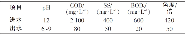該廢水水量約1000m3/d,主要來(lái)源于絲光廢水、退漿廢水、漂白廢水及印染廢水等,堿度大,COD、色度、SS較高。廢水中含有漿料、殘余染料、纖維素、表面活性劑、漂白劑等,其中使用的上漿劑為難降解的聚乙烯醇。根據(jù)企業(yè)提供的進(jìn)水水質(zhì),確定主要進(jìn)、出水水質(zhì),如表1所示。