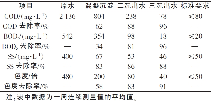 表2 進(jìn)、出水水質(zhì)及各單元去除率
