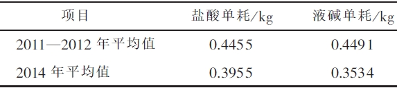 表6 2014 年酸堿耗與2011—2012 年平均酸堿單耗對比