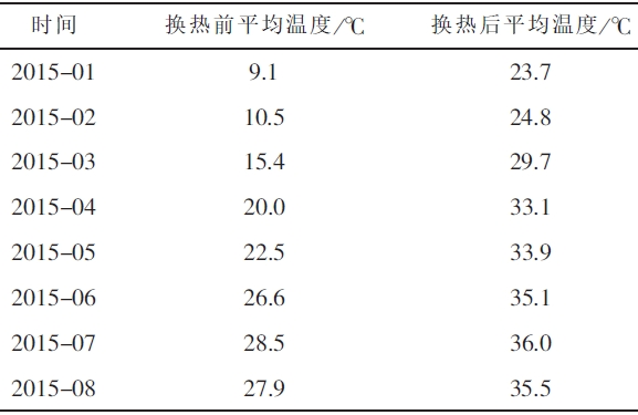 表3 2015 年1—8 月除鹽系統(tǒng)原水換熱前后溫度對比