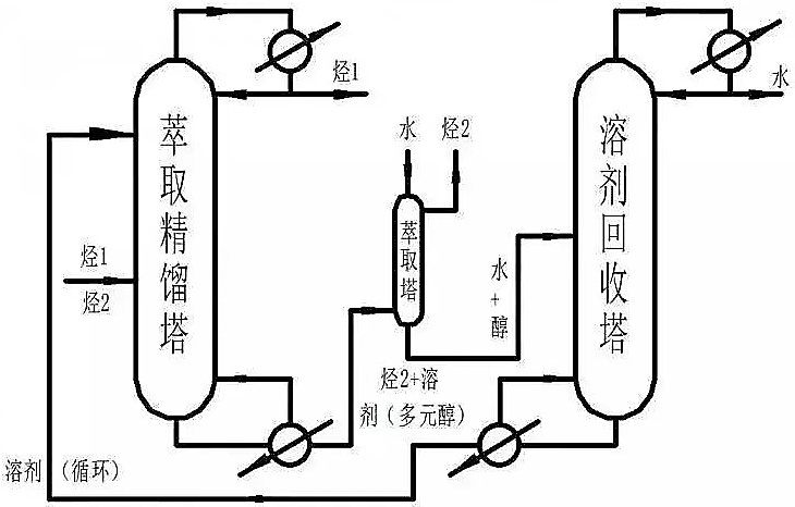 萃取精餾的基本原理是利用兩種互不相容的溶劑,把某種特定的溶質(zhì)從一種溶劑中萃取到另外一種溶劑中,從而再進(jìn)行蒸餾這樣的一個(gè)過程。